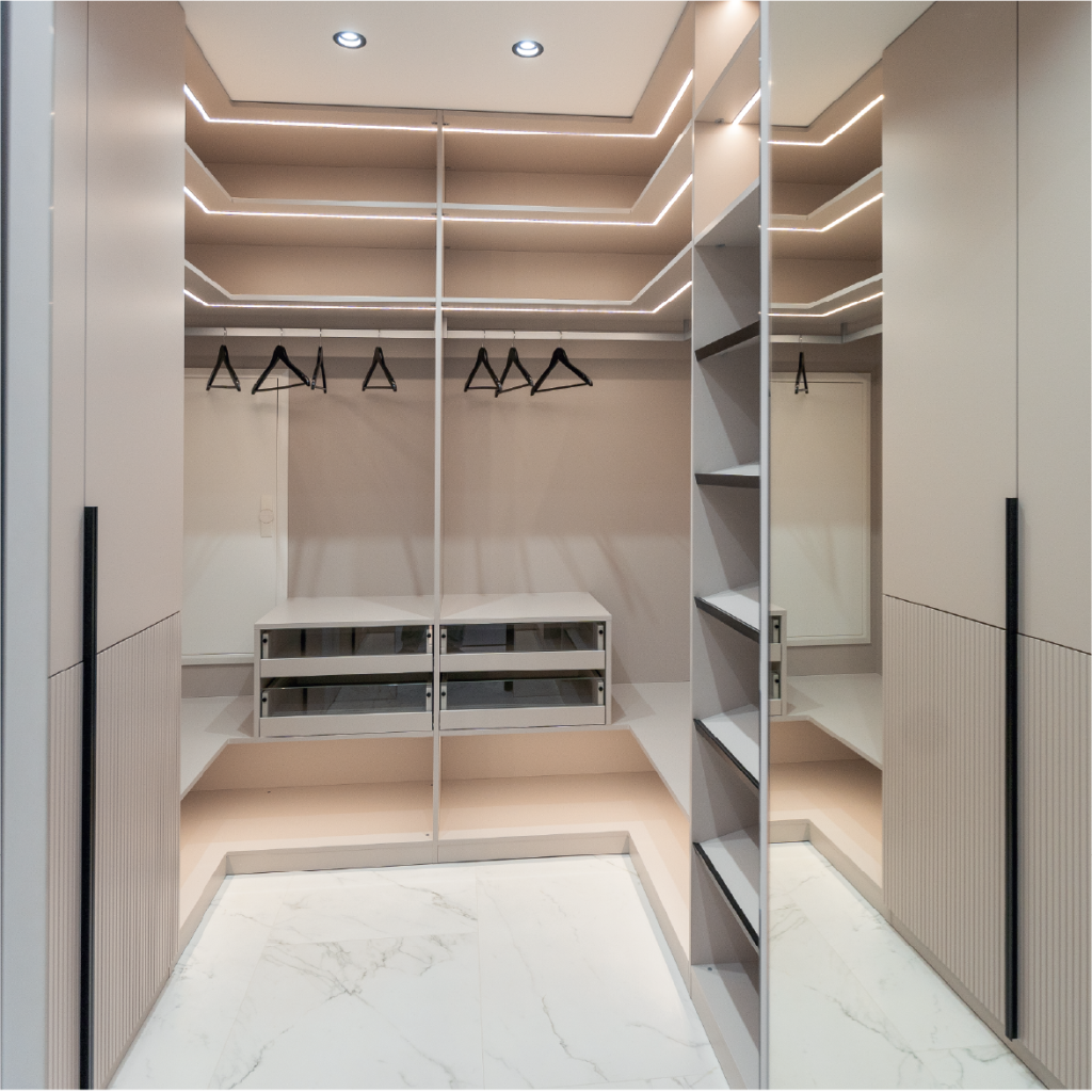 From sleek sliding wardrobes to classic built-in units and luxury accessories, our custom bedroom designs are created to suit your lifestyle, taste, and space requirements.
